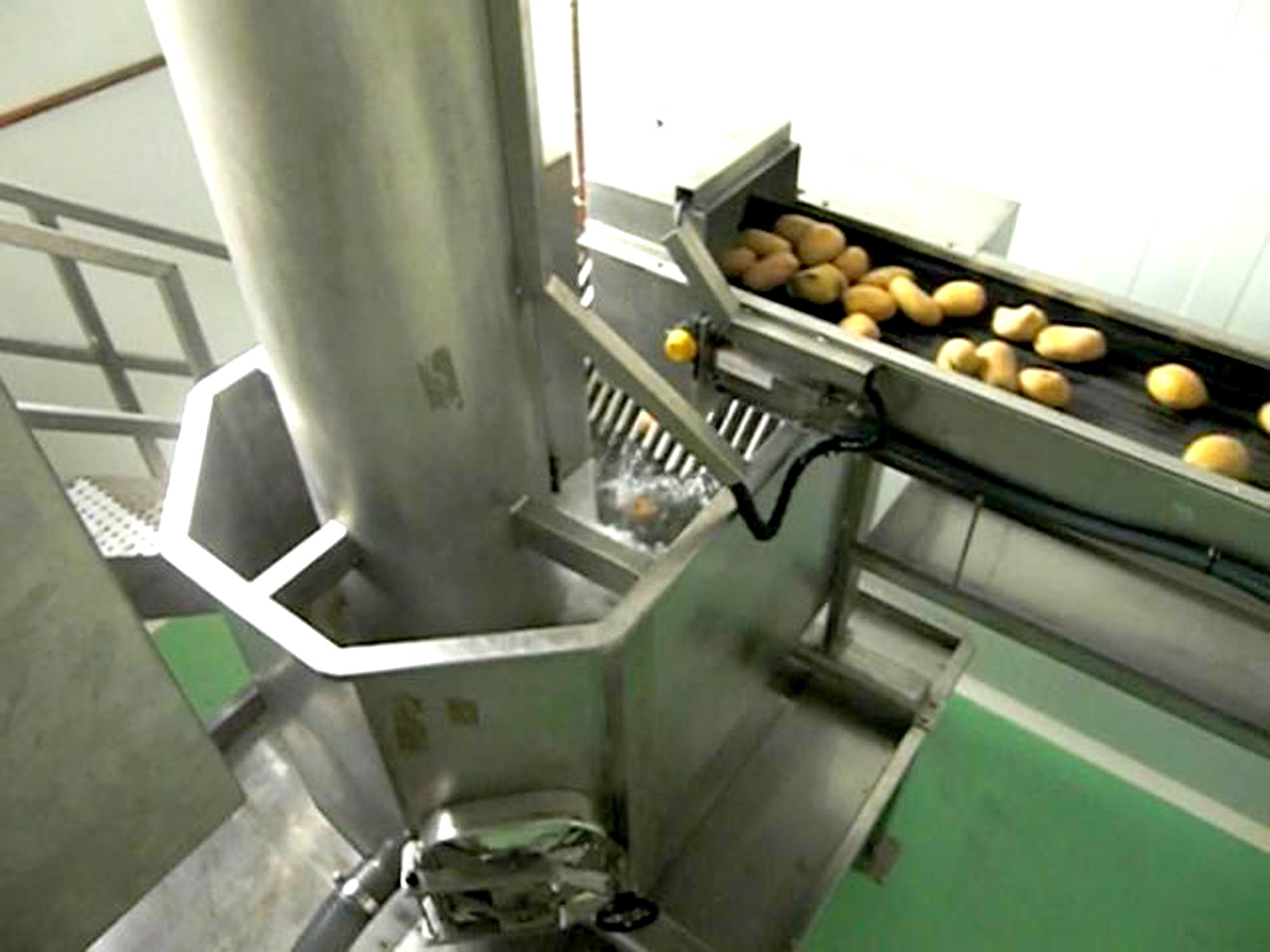 Line of peeling and chopping of potatoes. All built in stainless steel, and non-toxic modular polyethylene belts. It consists of:
